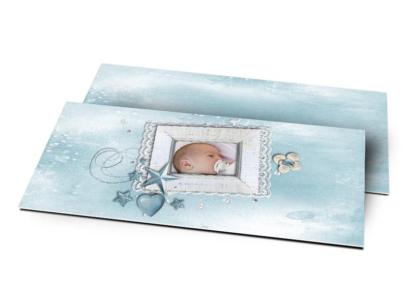 Faire-part naissance - Dentelle et étoile bleue