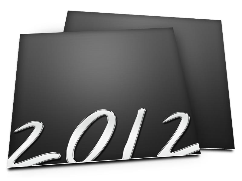 L'année 2012 apparaît à la manière de lettres en acier grâce à de jolies effets d'ombres et de couleurs. Mais ne vous y trompes pas. Il s'agit bien d'un design imprimé et non pas de lettre en relief. Le fond en dégradé de noir ajoute encore un peu plus de profondeur à l'année.