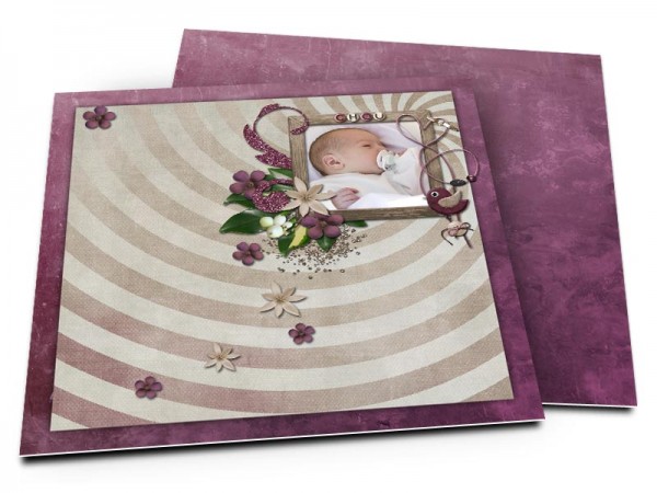 Faire-part baptême - Marron et pourpre + de 100 couleurs au choix