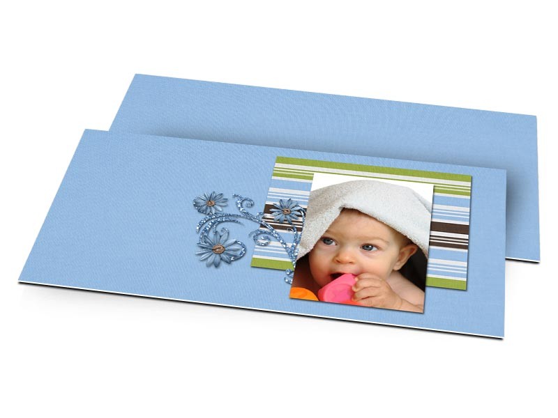 Marque-place baptême - Bleu – ornements floraux et rayures