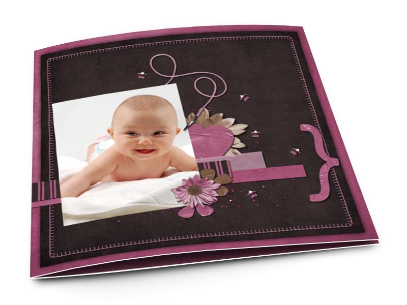 Marque-place baptême - Étoiles pourpre sur fond marron