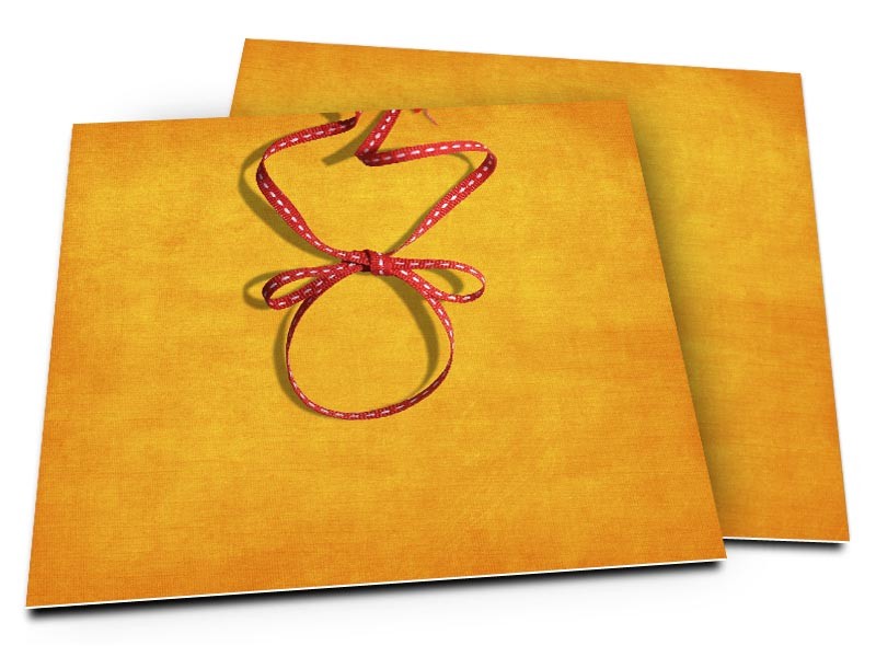Carton d'invitation mariage - Noeud rouge sur fond orangé