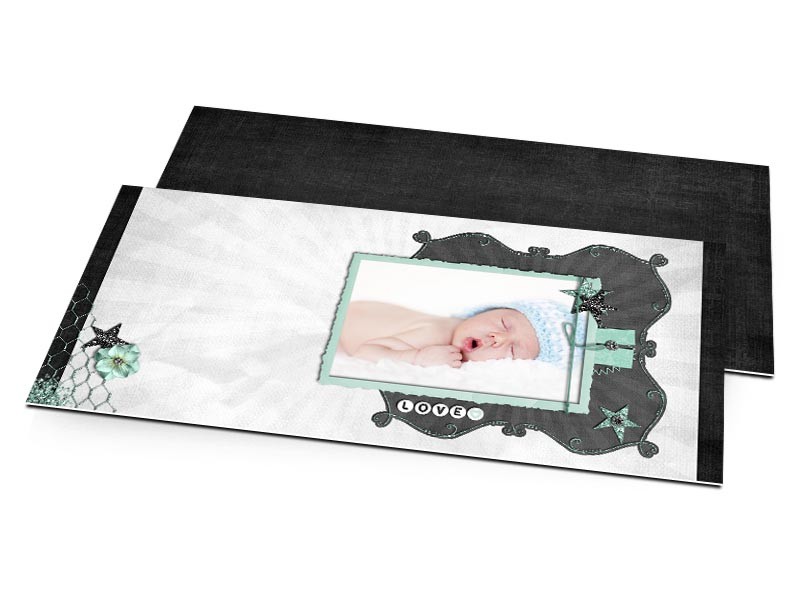 Remerciements naissance - Love gris, turquoise et noir