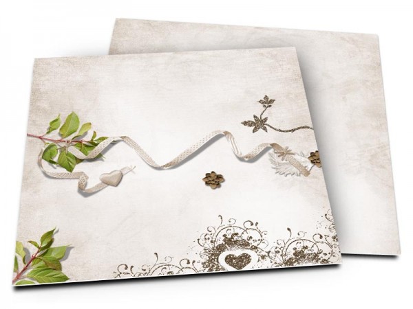Carton d'invitation mariage - Coeur gris sur ruban fin