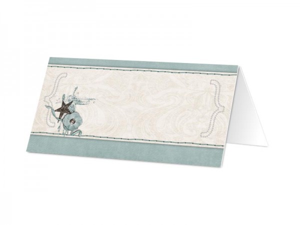 Marque-place mariage - Frise beige cousue sur fond turquoise