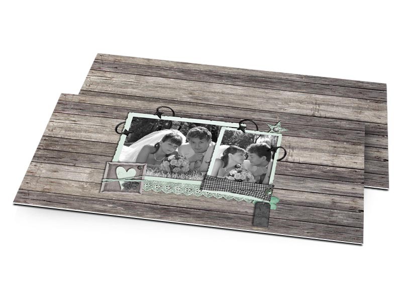 Carton d'invitation mariage - Bois gris et dentelle turquoise
