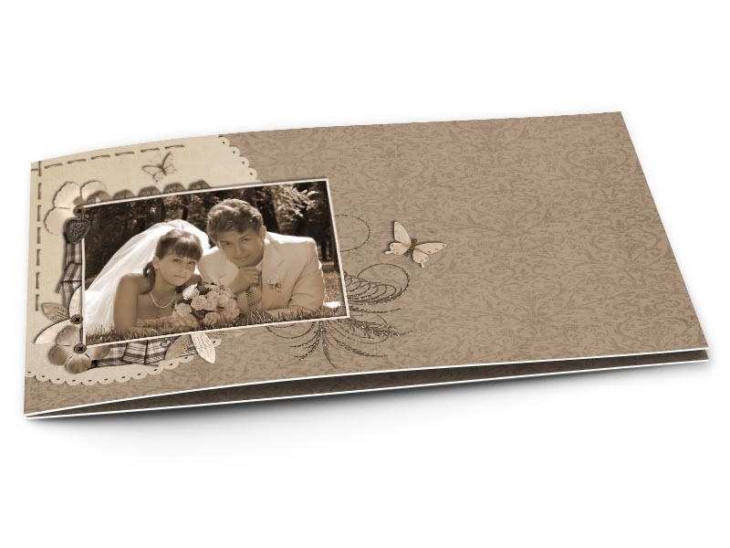 Carton d'invitation mariage - Fleurs et papillons sur fond marron