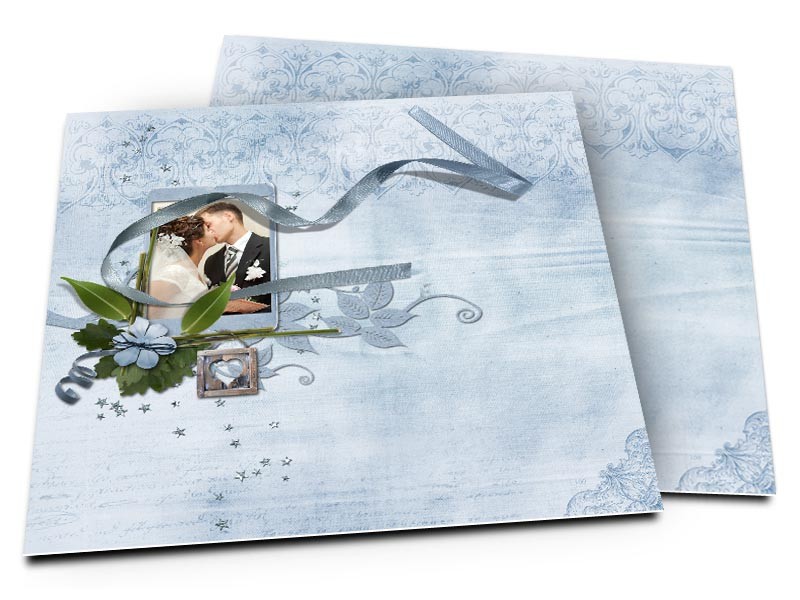 Carton d'invitation mariage - Le ruban et la fleur bleue