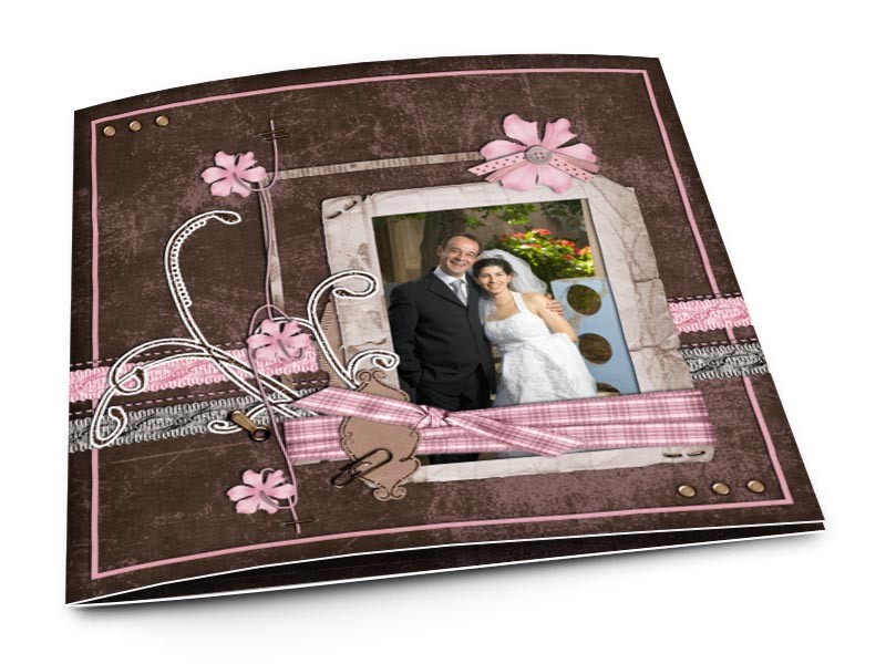 Carton d'invitation mariage - Rose et chocolat – fleurs roses et ornements