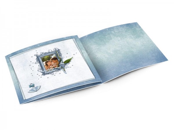 Remerciements mariage - Cadre bleu, fleur et ruban + de 100 couleurs au choix